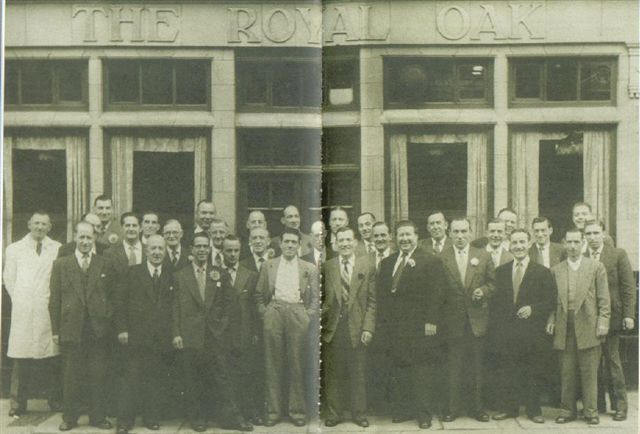 Mr R J Bayley, licensee of the Royal Oak, Bethnal Green, had to post "full house" notices when Joe Hitchcock and his Licensed Victuallers Darts Four visited the house. An additional attraction was the presence of a darts team of four footballers from the Arsenal. (1949) ***
